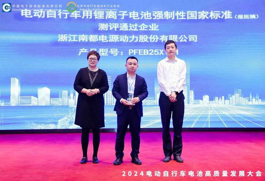 During the conference, Narada's 4825 lithium iron phosphate battery successfully passed the evaluation of the first batch of the "Mandatory National Standard for Lithium-Ion Batteries for Electric Bicycles", proving that Narada's electric bicycle batteries meet national safety and regulatory requirements.